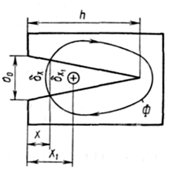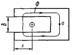 Рассмотрим силу, действующую на проводник (дугу), симметрично расположенный в пазу прямоугольного сечения (рис.6.3).