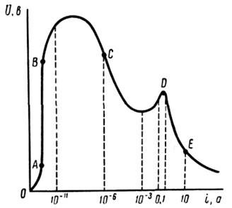 Рис. 8.2. Вольтамперная характеристика газового разряда