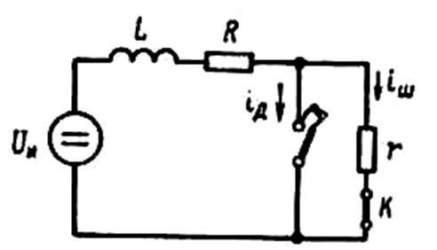 Для полного разрыва цепи ток iro необходимо отключить дополнительным контактом К (рис. 8.5). В этом состоит недостаток метода шунтирования, так как он несколько усложняет коммутационный аппарат.
