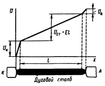 Рис. 8.3. Распределение напряжения по длине электрической дуги