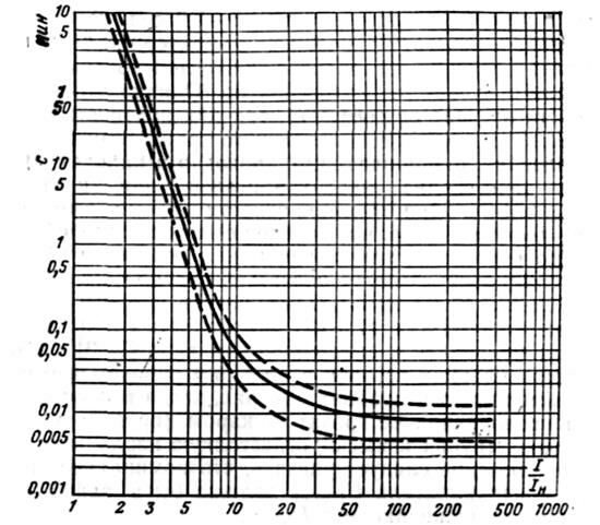 Рис. 11.6. Времятоковая характеристика предохранителя ПН-2
