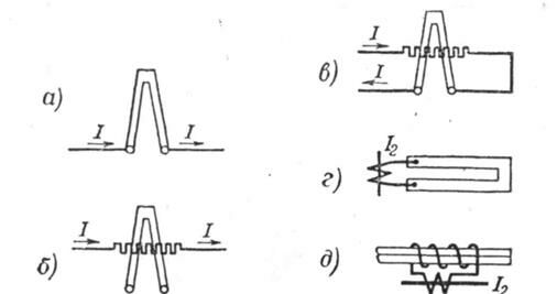 б) Схемы включения реле.