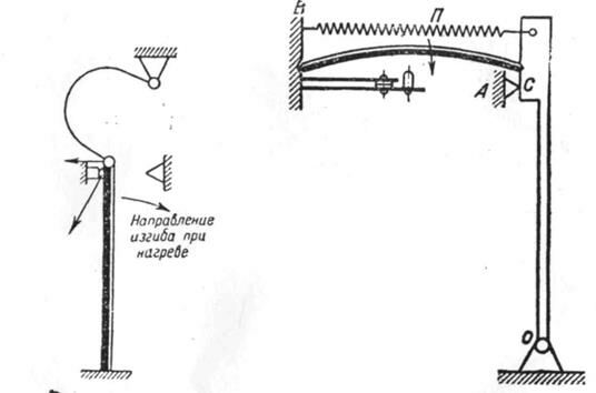 Такая конструкция имеет значительно большую деформацию и, следовательно, большую чувствительность в сравнении с отдельной пластиной при том же изменении температуры.