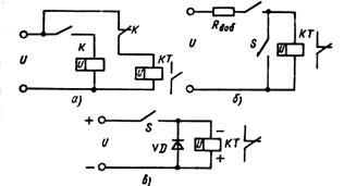 Рис. 14.12. Схемы включения реле с выдержкой време­ни