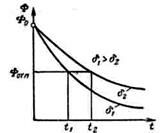 Поток в магнитопроводе нарастает с постоянной време­ни  , определяемой параметрами короткозамкнутого вит­ка  . Если перегрузка кратковременна и ее длитель­ность  , то поток к моменту  не достигнет значе­ния потока срабатывания и якорь останется неподвижным. Если  , то реле сработает.   Таким   образом, предотвращается отключение нагрузки (двигателя) при боль­ших, но кратковременных токовых перегрузках, не опасных для двигателя.