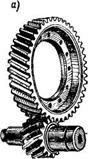 С наклонным расположением контактной линии связана целесообразность изготовления косозубой шестерни из материала, значительно более прочного (высокотвердого), чем у колеса. Это объясняется следующим. Ножки зубьев обладают меньшей стойкостью против выкрашивания, чем головки, так как у них неблагоприятно сочетание направления скольжения и перекатывания зубьев. Следовательно, ножка зуба колеса, работающая с головкой зуба шестерни, начнет выкрашиваться в первую очередь. При этом, вследствие наклона контактной линии, нагрузка (полностью или частично) передается на головку зуба колеса, работающую с ножкой зуба шестерни. Слабая ножка зуба колеса разгружается и выкрашивание прекращается. Дополнительная нагрузка ножки зуба шестерни не опасна, так как она изготовлена из более стойкого материала. Применение высокотвердой шестерни позволяет дополнительно повысить нагрузочную способность косозубых передач до 25...30%.