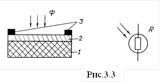 Оптоэлектронные приборы излучают и преобразуют излучение в инфракрасной, видимой или ультрафиолетовой областях спектра. Основным компонентом оптоэлектроники является пара с фотонной связью, называемая оптроном. Простейший оптрон можно представить четырехполюсником, состоящим из трех элементов: источник света - 1, световод - 2 и приемник света - 3 (рис.3.1).