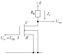 сотни Ом. Эти особенности вносят и особенности в работу ключей, созданных на таких структурах. Рассмотрим эти особенности на примере данного полевого транзистора с резистивной нагрузкой: