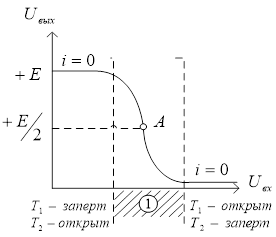 Область 1 – область, где один из транзисторов имеет не бесконечно большое внутреннее сопротивление. В т. А сопротивления каналов обоих транзисторов равны.