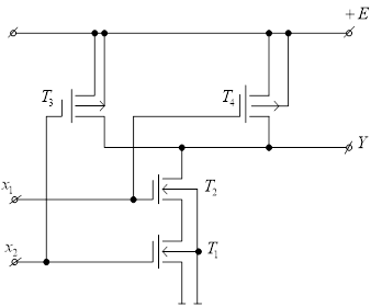 В рамках серии КМОП-структур, оказалось удачным и создание другого базового элемента (элемента И-НЕ).
