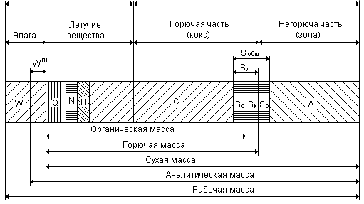 По составу исходной массы топлива (при разном его состоянии) выделено несколько видов так называемых расчетных масс (рис. 3.1).