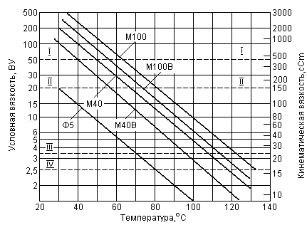 Кроме энергетических М40, М40В, М100, М100В на рис. 3.5 показана характеристика транспортных мазутов, применяемых для судовых установок (флотский мазут Ф5).