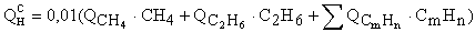 Здесь СН4, С2Н6, - содержание горючих газов в топливе, % по объему; QCH4 ,QC2H6 - объемная теплота сгорания соответствующих газов, кДж/м3. Теплоту сгорания газового топлива определяют в газовом калориметре.