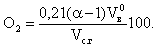 Остаточный кислород в продуктах сгорания, в процентах от объема сухих газов, можно выразить следующим образом: