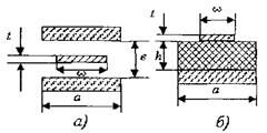 Рис. 1.27. Поперечные сечения полосковых линий: а – симметричной; б – несимметричной