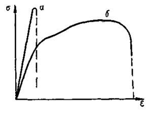 Кривые растяжения материалов: а-хрупкого, б-пластичного