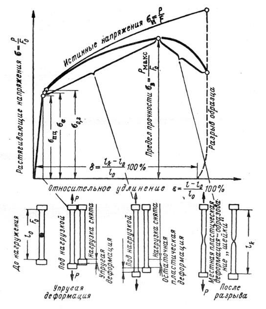 Отношение максимальной силы, которую способен выдержать образец, к его начальной площади поперечного сечения носит название предела прочности, или временного сопротивления, и обозначается через σвр.