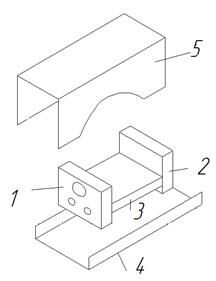 Демонтируемая пайка выполняется следующим способом. В паз между корпусом 1 и крышкой 5 закладываются шнур 2 из термостойкой резины, стальная проволока 3 и запаиваются припоем 4. Резиновый шнур обеспечивает предварительную герметизацию, защищая внутреннюю полость блока от попадания паров флюса при пайке. При демонтаже паяный шов разрушается вытягиванием проволоки 3, которая для удобства работ должна иметь свободный конец, выходящий за пределы пайки.