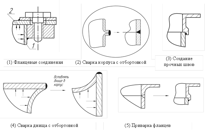 2) Корпус с отбортовкой – для снижения напряжений целесообразно применять стыковой шов;