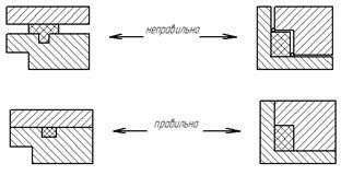 При проектировании сварных корпусов необходимо чтобы сварочный шов был разгружен. Это достигают конструктивными исполнениями: