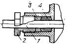 Сальники используют также и для электрических выводов в которых кабель 1 с гладкой наружной изоляцией при вращении гайки 2 через шайбу 3 плотно обжимается резиновым уплотнителем 4.