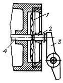 На рисунке 39 показана конструкция для передачи поступательного движения в герметичный блок с применением мембраны. Толкатель 2, припаянный к мембране 1, получает движение от рычага 3 и передает штоку 4, находящемуся в гермообъеме.