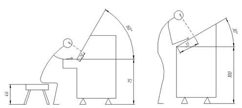 Работа оператора при различных положениях требует соответствующих размеров пультов.