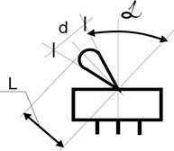 Длина приводного элемента (рычага) L тумблера от 9 до 50 мм; угол перемещения 400÷1200; диаметр конуса рычага d 3÷15мм. Усилие по переключению тумблера не должно превышать 7Н.