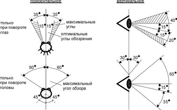 1) Поле зрения человека в горизонтальной и вертикальной плоскости представляется следующим образом: