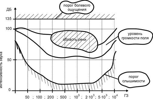 С помощью слуховых ощущений человек воспринимает звуковые частоты в диапазоне 16÷20000Гц.