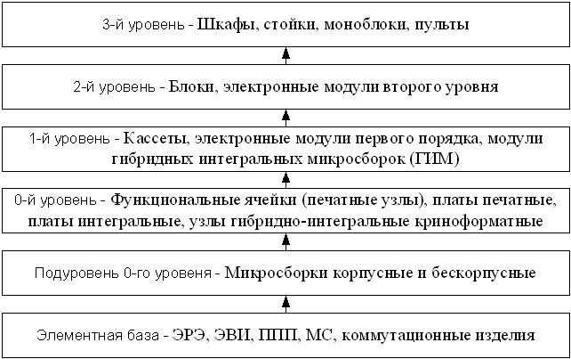Типовая структура конструкций современных РЭС состоит из элементной базы, одного подуровня и четырёх уровней (ГОСТ 26632-85).