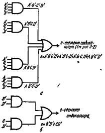 Пример реализации логической функции (1.6) с использованием элементов И и ИЛИ показан на рис. 1.4,а. Следует отметить полное соответствие между четырехвходовой схемой И и конъюнкцией четырех переменных. Полное соответствие между структурой вентильной схемы и логическим уравнением позволяет легко оценить достоинства логических уравнений при проектировании вентильных схем. На рис. 1.4,б. приведена упрощенная схема, реализующая уравнение, которое было получено после минимизации выражения (1.6) с помощью карты Карно.