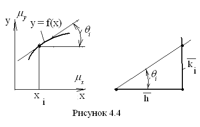 Выберем горизонтальный отрезок произвольной длины и проведём из его левого конца наклонную прямую, параллельную касательной, а из правого конца – вертикальную прямую до пересечения с наклонной. Вычислим длину отрезка, полученного на вертикали и обозначенного на рис. 4.4 буквой
