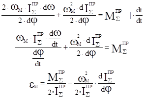 §2.5 Вывод формулы для определения закона движения звена приведения в форме кинетической энергии (определение ωм).
