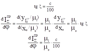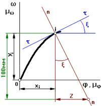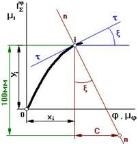 В соответствии с определением производной проведем касательную к кривой в точке i и определим тангенс угла наклона этой касательной. Для этого проведем нормаль через точку i. Тогда