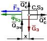 Из рассмотрения данного треугольника следует, что при вращении ротора на его опоре возникает знакопеременная нагрузка Q12, которая достигает максимума, когда ФS и G направлены вниз, и минимума, когда эти вектора направлены по вертикали в разные стороны.