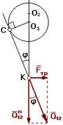 Без учета трения реакция направлена по нормали к взаимодействующим поверхностям. При учете трения результирующая реакция Q21 отклоняется от общей нормали на угол трения j в сторону противоположную направлению движения.