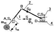 В четырехшарнирном механизме центр масс системы разноситься по точкам А и D, а противовесы устанавливаются на продолжении звеньев 1 и 3.