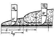 Переход к турбулентному режиму течения жидкости в пограничном слое определяется критическим значением числа Рейнольдса: Reх.кр= woxкр/n,