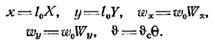 Для приведения к безразмерному виду выбираются масштабы приведения. В качестве масштабов удобно принять постоянные величины, входящие в условия однозначности. Для линейных величин выберем какой-либо характерный размер, например длину поверхности теплообмена l0, для скорости wo, для температуры vc