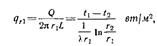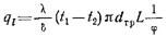 , Q=(t1-t2)/(1/2plL)*ln (r2/r1) ,