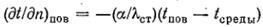 где (dt/dn)пов - градиент температуры на поверхности; a - коэффициент теплоотдачи между жидкой средой и поверхностью твердого тела; l- коэффициент теплопроводности стенки; tпов -температура поверхности стенки; tсреды - температура окружающей среды.