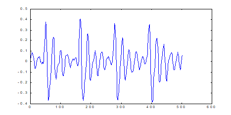 исходная последовательность "похожа" на исходную. В качестве примера рассмотрим фрагмент звукового файла с записью звука "а". Этот сигнал не является периодическим в математическом смысле слова, однако, визуально такая периодичность просматривается. Значения периода находятся по максимумам соответствующей автокорреляционной функции. Найдем преобразование Фурье от