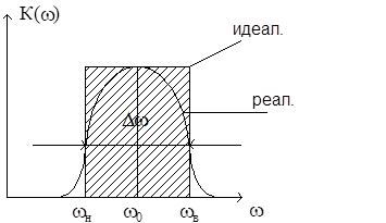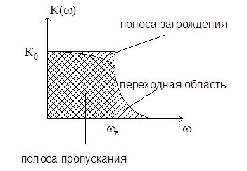 В реальных фильтрах переход от полосы пропускания к полосе задержания занимает определенную область частот, где К(w) = var.