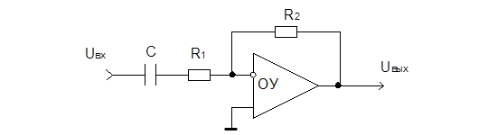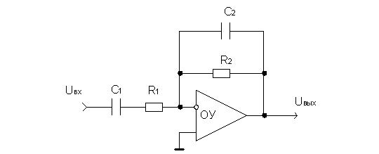 Дифференциатор на ОУ – фильтр 1-го порядка.