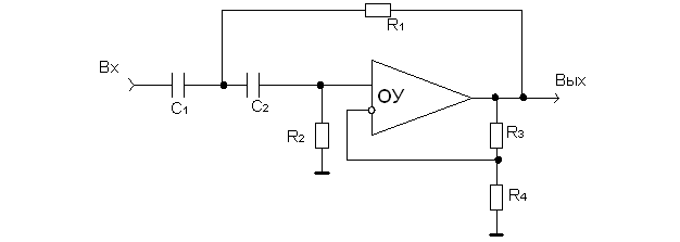 R3/R4 = 2 - a, где a - коэффициент затухания фильтра и определяет тип фильтра.