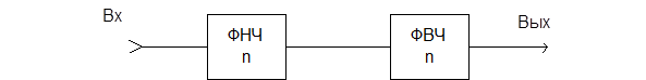 При построении полосовых фильтров используют ФНЧ и ФВЧ соответствующего порядка, причем
