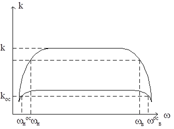 Зависимость k от w можно рассматривать как нестабильность k от частоты. Т. к. ООС стабилизирует k Þ стабилизация k и при изменении w, т. е. в более широкой полосе частот.