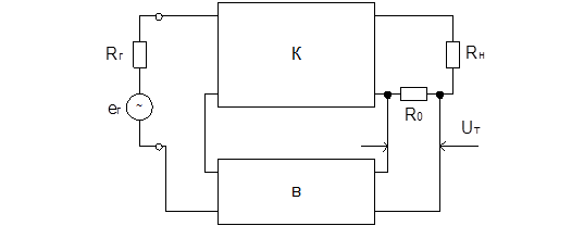 | 3. По напряж. Последовательная ОС | По токуR0 – датчик тока, с помощью которого сигнал тока преобразуется в напряжение Uт = Iн*R0 По току |