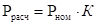 Расчетная нагрузка Ррасч определяется произведением номинальной нагрузки и коэффициента нагрузки К: